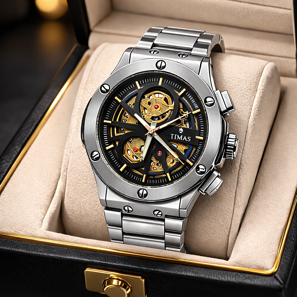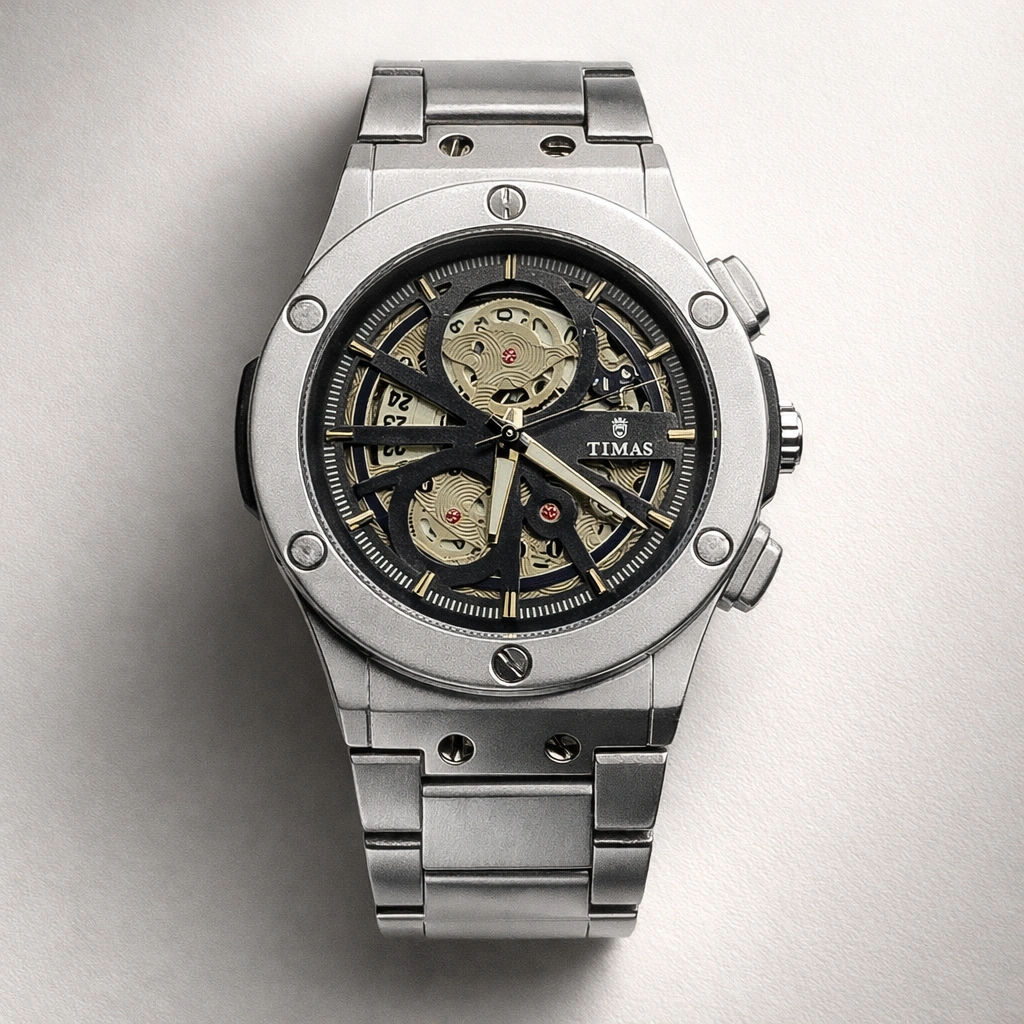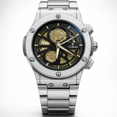 Upgrade your style with the TIMAS skeleton quartz watch featuring a bold open dial design and premium stainless steel finish. Elegant, reliable, and perfect for everyday wear.